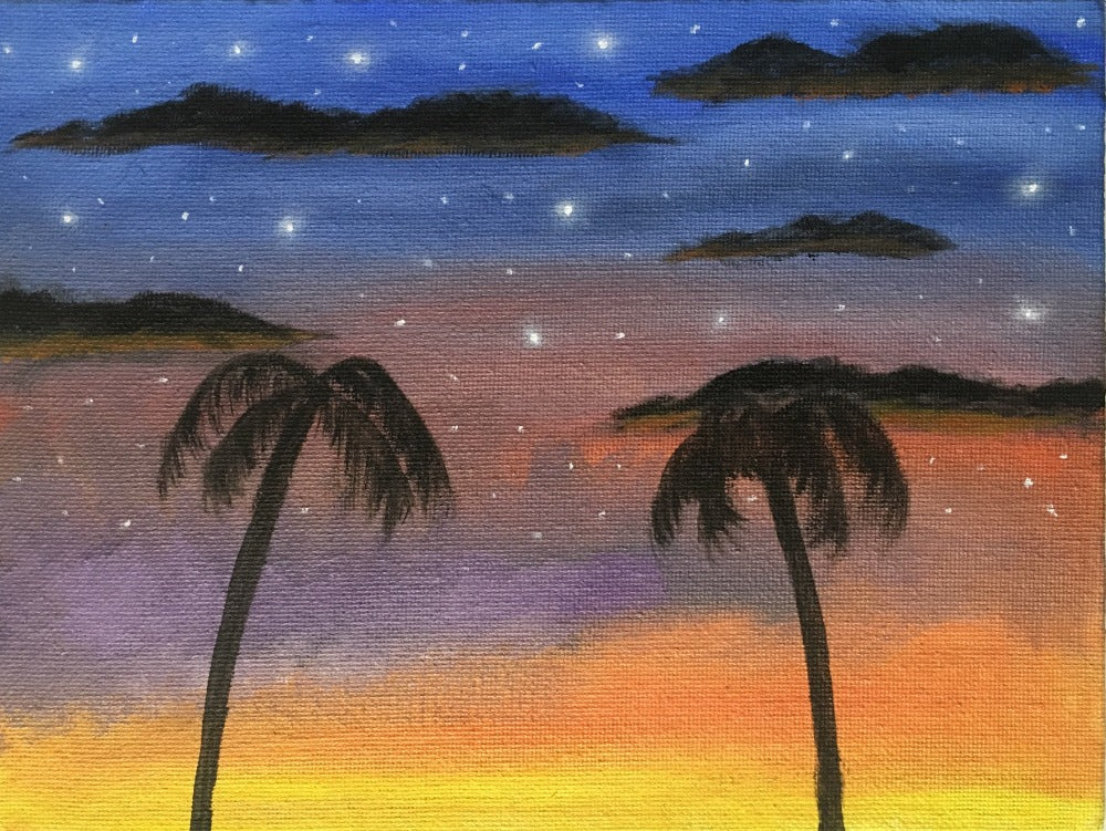 "Tropical Sunset" Oil Painting - 6x8 inches